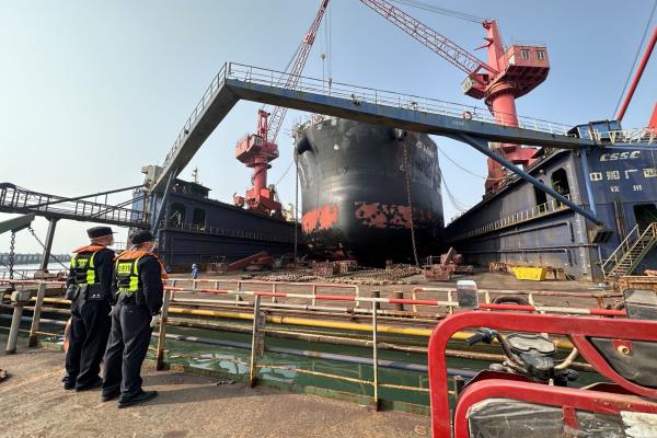 钦州出入境边防检查站为钦州港首艘自造万吨级巨轮保驾护航