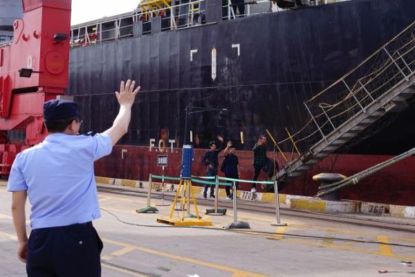 “非常感谢你们,要不是有你们的帮助,这回怕是要耽误船期了……”船长对民警连连称赞。