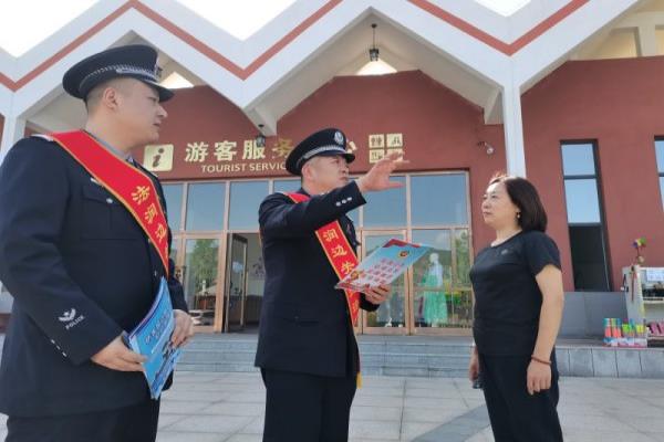 近日,吉林白山边境管理支队大栗子边境派出所民警携“法”走进辖区景点开展边境政策法规宣传活动,为外地旅客出游保驾护航,进一步强化辖区群众法律意识,不断提升守法自觉性。