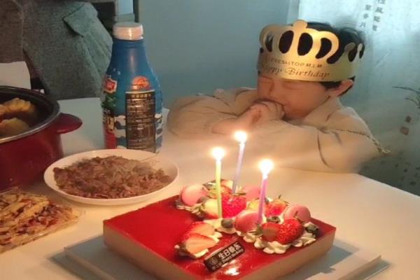 周雨与女儿一起吹蜡烛