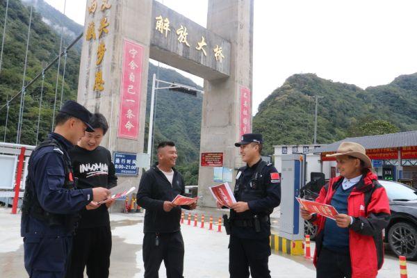 在端午节来临之际,林芝背崩边境派出所解放大桥执勤点民警为过往群众讲解边境条例相关知识 吕恒刚 摄