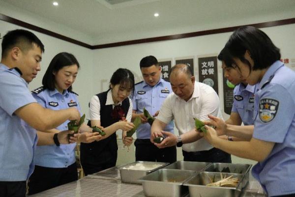 该站民警提前准备好泡好的糯米、粽叶,蜜枣、葡萄干,以及五彩绳、荷包等节日小礼物,与工行锦州开发区支行员工一起包粽子、煮粽子,正是粽味飘香时,大家共同谈发展、话振兴,共同表达对甜甜蜜蜜、美美满满幸福生活的憧憬与向往和对移民管理事业高质量发展的美好祝愿,共庆传统佳节的到来。