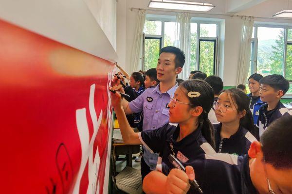 “课上我又认识了几样新型毒品,我会把学到的知识分享给爸爸妈妈和身边朋友。”集安市第七中学学生王一茗在印有“健康人生 绿色无毒”的条幅上签名时说。