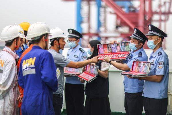 民警们号召码头企业和船方积极举报涉毒违法犯罪行为,共同营造安全稳定的口岸环境。