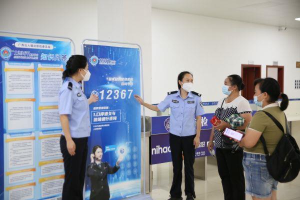 图为民警为旅客解读出入境政策(拍摄者:王威,拍摄时间:2023.06.25)