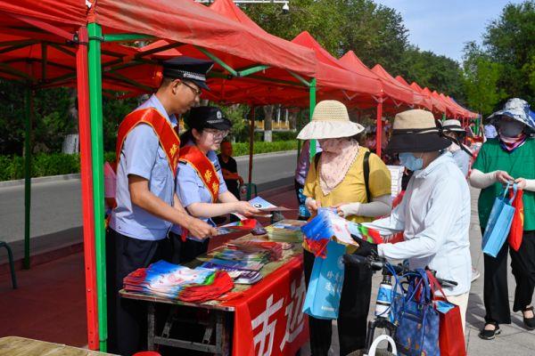 6月26日,在国际禁毒日来临之际,老爷庙出入境边防检查站联合哈密市禁毒办等单位开展“健康人生 绿色无毒”主题禁毒普法宣传活动。