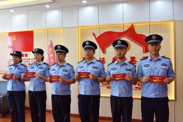 “十七年前的今天,党旗下的我庄严宣誓,内心无比骄傲和自豪。回首来时路,心中充满了温暖与感动,党组织的关怀和培养,同志们的信任和支持,伴随我一路走来、一路前行。今天,我重温那段铭记于心的入党誓词,更能感受到一种神圣、一种责任、一种使命。”捧着鲜红的“政治生日”贺卡,已有十七年党龄的党员民警王浩然激动地说。