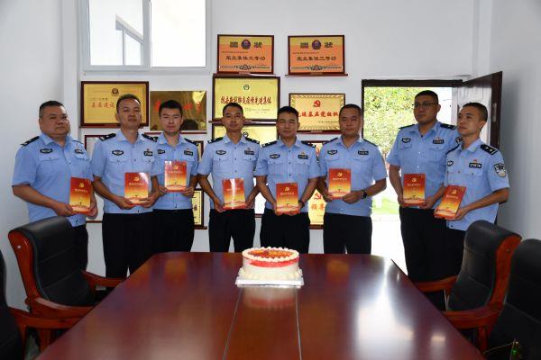 6月30日,云南德宏边境管理支队混板边境派出所开展“迎七一 忆初心 强党性”主题党日活动,庆祝中国共产党成立102周年,弘扬伟大建党精神,增强党组织的凝聚力、战斗力和号召力,提高党员的荣誉感、责任感、归属感,更好地发挥党员先锋模范作用。
