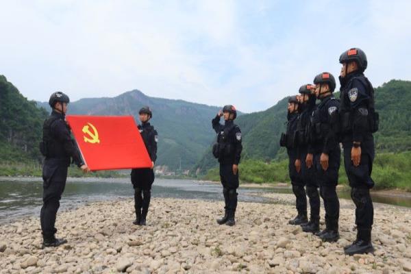 在鸭绿江畔,参与此次巡逻任务的4名党员民警举起右手、握紧拳头,在副站长宋佳磊的带领下,面向党旗再次庄严宣誓,“我志愿加入中国共产党……随时准备为党和人民牺牲一切,永不叛党。”铿锵恢宏的誓词,在党旗下、边境线上接受深刻的党性教育和灵魂洗礼,进一步筑牢了“不忘初心、牢记使命”的思想根基。