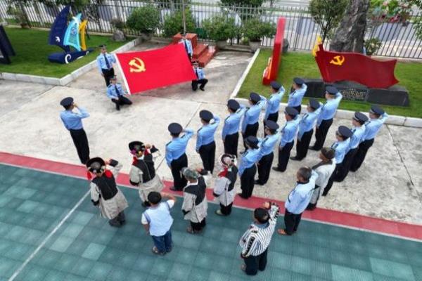 6月29日上午8时,迎着冉冉初生的朝阳,上江边境派出所民警与叶子花居、同心社区党员齐聚在国旗下,共同举行升旗仪式。升旗仪式开始,全体党员列队整齐、庄严肃穆。在庄严雄壮的国歌声中,升旗手迎风振臂,五星红旗缓缓升起,迎风飘扬。全体党员肃穆的举起右手向国旗敬礼,共同表达对伟大祖国的深情热爱和诚挚祝福。