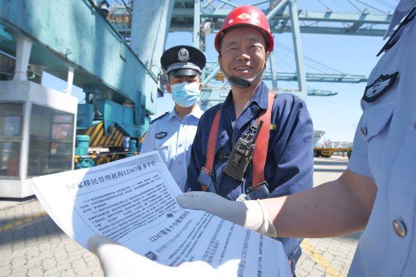 秦皇岛出入境边防检查站宣传“12367”服务平台到码头一线