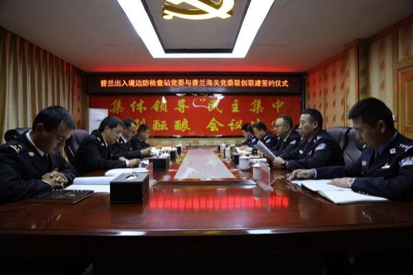 签约仪式上,普兰出入境边防检查站党委书记、站长格桑朗杰同志和普兰海关党委书记、关长王柯同志分别介绍了各自单位整体情况和党建工作方法特点,签署了《党建联创联建协议书》,确定了“党建共建、资源共享、人员交流、互利共赢”的共建目标,并就下一步建立良好的党建联创联建长效机制,开展全方位、多领域、深层次的联建方式进行了深入交流,共建双方就促进联勤联动、搭建交流平台、融合管理服务,擦亮国门名片等内容达成了共识。