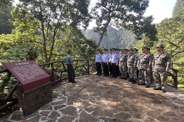 为庆祝中国共产党成立102周年,回顾党的光辉历程,讴歌党的丰功伟绩,6月30日,崇左边境管理支队下雷边境派出所党支部、下雷边境检查站党支部联合南方锰业保卫处党支部共同开展“寻初心、守初心、践初心”为主题的实践活动。
