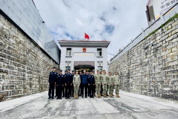 7月19日, 亚东出入境边防检查站政治处党支部、解放军某部分队党支部、政协亚东县委员会办公室党支部(以下简称:三方共建单位)联合开展“军警地融合共建 党旗飘国门一线”主题党日活动。