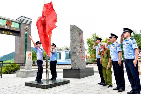 “雄赳赳,气昂昂,跨过鸭绿江。保和平,卫祖国,就是保家乡……”在关老的带领下,民警、少先队员、游客,在国门、界碑前唱响这首《中国人民志愿军战歌》。