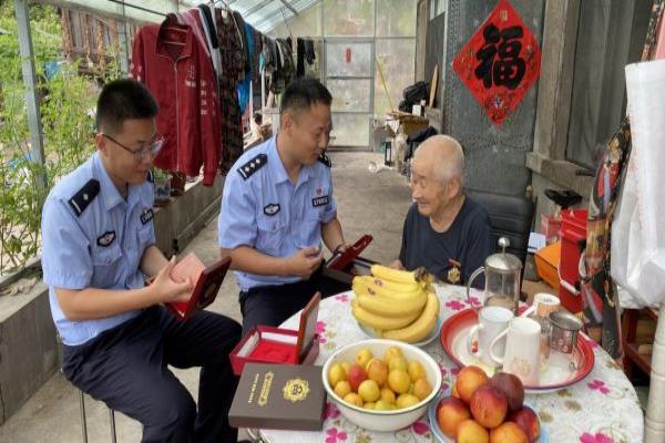 慰问中,民警代表与全德兴老人亲切交谈,关切地询问全老的生活情况和身体近况,认真聆听全老讲述当年的烽火岁月以及那些可歌可泣的战斗故事。