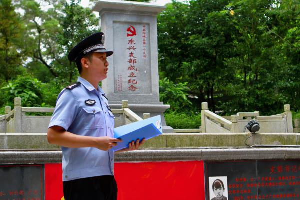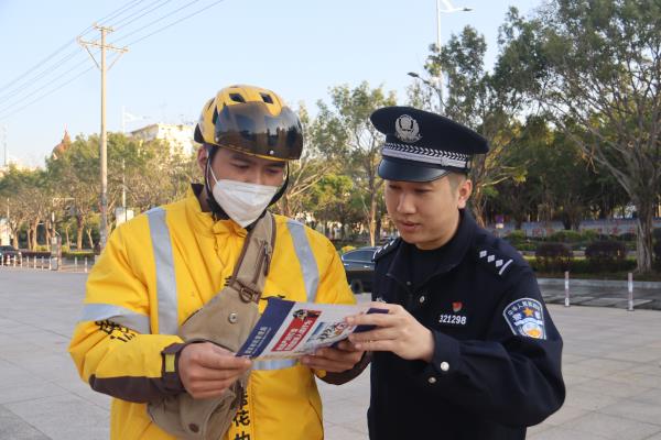 方冠力入警13载,从“橄榄绿”到“藏蓝青”,始终扎根南疆边陲,用忠诚和奉献全力守护边境辖区安宁稳定。他坚持弘扬“枫桥经验”,积极践行党的群众路线,主动探索“党建+社区警务+网格化综合治理+群防群治+大数据”边境市域治理新模式;他开创“集防”警务,发动组建超千人以上的群防群治队伍“北仑河卫士青年突击队”,其中首创“外卖小哥边境骑士队”工作法,让300余名外卖小哥既送买卖又守平安,成为社会面管控的“千里眼、顺风耳”,得到上级高度肯定;他开创“侨乡”警务,联合华侨联谊会成立“警侨初心站”,试行“警务+侨联”模式,在“华侨之乡”东兴书写暖侨、助侨、护侨”新篇章;他开创“便民”警务,建立42个警民互动微信群,覆盖辖区5000多名群众代表,线上线下收集社情民意。5年来,共组织化解辖区矛盾纠纷800余起,帮助群众答疑解难1500多人次。图为方冠力为外卖小哥讲解法律法规