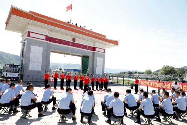 “你们驻守在国门一线,守护着祖国边疆的安宁,你们辛苦了,向国门卫士致敬。”在国门前简易的舞台上,慰问演出在歌曲《红太阳照边疆》中拉开序幕。文艺轻骑兵们带着深厚的情感、伴着优美的旋律、唱着动人的歌曲,现场观看演出的移民管理警察们都沉浸在这欢快的气氛中。器乐合奏《英雄牧马人》琴声悠扬、纯美浑厚,将演出推向高潮,赢得掌声不断。同时该站积极选派文艺骨干参加演出,由该站民警演唱的《敬礼,我的警旗》,表达了移民管理警察践行训词精神,一心向党、忠诚为民的坚定信念。