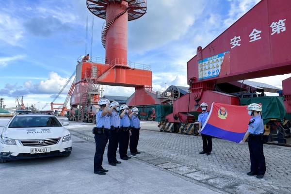 活动中,莆田边检站执勤一队民警在口岸一线,身着执勤装备,警容严整,精神抖擞,面向警旗庄严宣誓。整齐划一、铿锵有力的宣誓声,充分展示出人民警察“对党忠诚、服务人民、执法公正、纪律严明”的良好精神风貌。