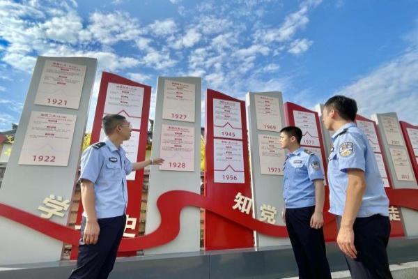 期间,党员民警们通过教导员的解说和党史展板全面深刻了解中国共产党波澜壮阔的百年历史,全程用心倾听、细心感受,相互交流讨论,追忆当年那段充满革命激情的光辉岁月。大家按照中国人民站起来、富起来、强起来的历史脉络,参观了“建立中国共产党,夺取新民主主义革命伟大胜利”“成立中华人民共和国,进行社会主义革命和建设”“实行改革开放,开创和发展中国特色社会主义”“推进中国特色社会主义进入新时代,全面建成小康社会,开启全面建设社会主义现代化国家新征程”四个部分。让每个参观的民警都深切地感受到中国共产党团结带领中国人民铸就百年辉煌的不懈奋斗、不怕牺牲、理论探索、为民族造福、自身建设的壮阔历程。参观结束后,全体党员民警面向鲜红的党旗,举起右拳,重温了入党誓词。铿锵有力的誓言表达了全体党员民警对党的无限忠诚和热爱以及为共产主义事业奋斗终身的坚定决心。