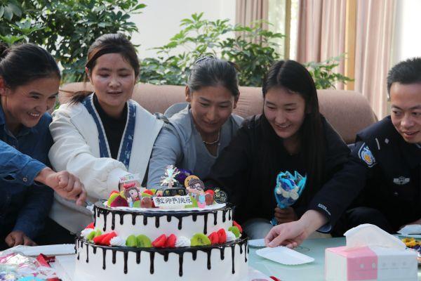 日土大队部、日土边境派出所民警与辖区学校老师共同切蛋糕 任博摄