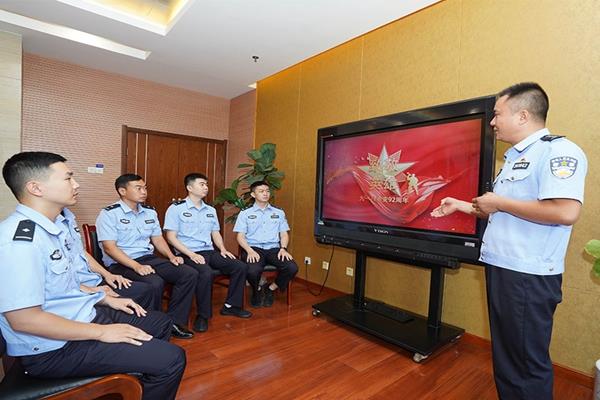 “回顾历史让我们居安思危、警钟长鸣,没有强大的祖国就没有人民的尊严,我们更应珍惜这来之不易的和平。”该站组织民警观看《勿忘九一八》革命纪录片,观影结束后民警耿瑞动情地说道。通过生动的历史镜头,民警们详细了解了日本侵略者蓄意制造事端发动侵华战争,中国人民奋起反抗日本侵略者的史实。随后,民警代表们结合抗战精神、伟大建党精神内容,以一个个生动的党史故事为切入点谈感想,讲体会,说感悟,激发民警爱党爱国热情和开拓进取、建功立业的壮志豪情。最后,民警们庄严肃立,面向党旗,重温入党誓词,重忆入党初心。