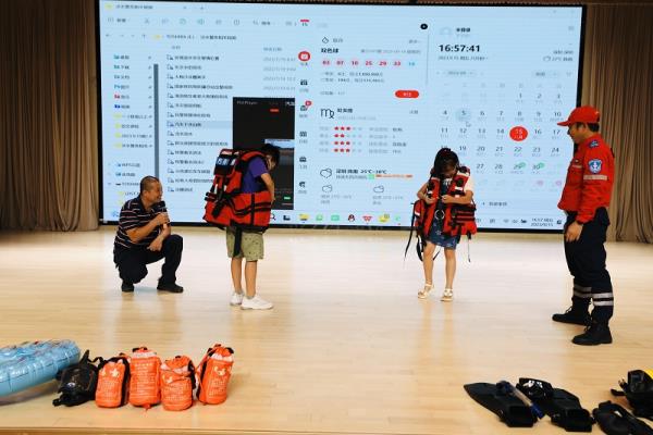 中秋国庆小长假即将来临,为预防和遏制小学生溺水事故发生,蛇口出入境边防检查站主动联系共建学校单位,由国家特级救生员、蛇口出入境边防检查站执勤七队教导员黄永骥走进校园,为孩子们带来一场涉水安全教育“必修课”,通过组织学生试穿救生衣、试用救生圈、应急救援等环节,现场向学生传授心肺复苏等防溺水急救知识,并结合现实生活中的溺水案例,告诫学生要远离河道、水库等危险水域,进而增强他们的安全防范意识和应对危险的自救能力。