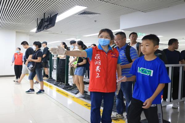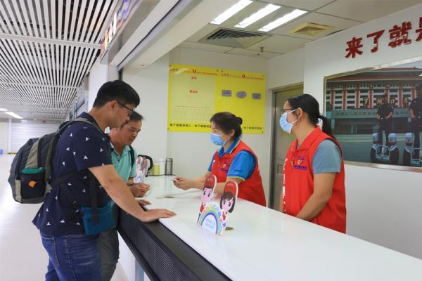 “想要办理采集备案生物信息的旅客,可以前往信息采集中心”“推婴儿车走不了快捷通道,请在特别通道通关”“阿婆,我来帮您拿行李吧,我是志愿者……”9月16日上午10点,一批身着红马甲的志愿者们与罗湖出入境边防检查站民警们在罗湖口岸出入境大厅繁忙工作、服务旅客,细心为出入境旅客提供通关指引、热情帮扶,形成一道靓丽的红色风景线。