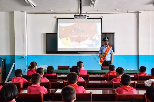 为营造良好的爱国主义教育氛围,传承红色基因,发扬革命传统,9月20日,老爷庙出入境边防检查站民警来到哈密市伊州区花园乡第二小学开展国防教育宣传进校园活动。