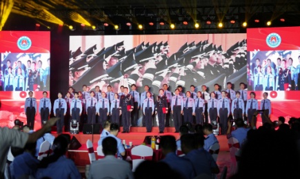 天上一轮满,人间万里明。为喜迎中秋、欢度国庆,探索创新思想政治工作方法,激发广大民警职工爱党爱国、爱岗爱家情怀,9月22日晚,皇岗出入境边防检查站结合深圳边检总站“暖心爱警进千家”家访活动,以“守护·团圆”为主题,在生活区篮球场举办“铭记赤子心、传颂家国情”文艺展演。该站党委班子成员、机关部门以上领导、各执勤队领导、先进集体和先进个人代表、民警职工、退休干部及家属代表到场观看。