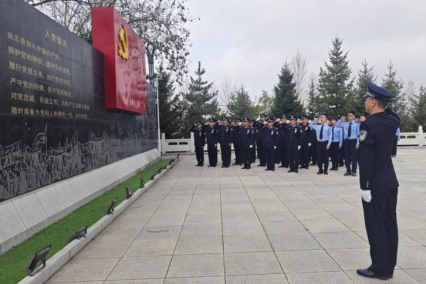 碧空如洗,松柏苍翠。革命烈士纪念碑前,气氛庄严肃穆,烈士纪念碑巍然耸立。上午9时许,60余名民警整齐列队、庄严肃立,深切默哀,表达对革命先烈的无比崇敬和哀思之情。默哀结束后,民警代表向革命先烈敬献了鲜花,全体民警瞻仰烈士碑,认真聆听英烈们的英雄事迹,表达对英烈的深深哀思和敬意。“我宣誓,我志愿加入中国共产党,拥护党的纲领,遵守党的章程,履行党员义务……”面对鲜红的党旗,民警们重温了入党誓词,用铮铮誓言表达移民管理警察的使命担当。