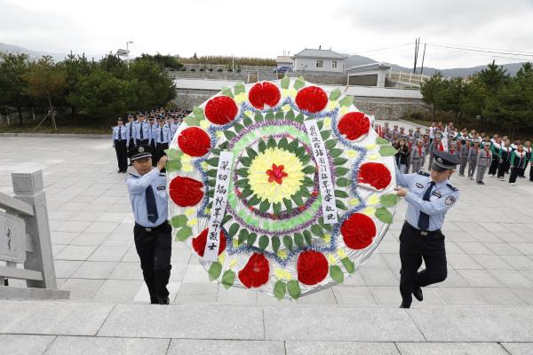 移民管理警察和小学师生代表在烈士墓前肃立默哀,向烈士纪念碑敬献花圈,开展爱国主义教育,献唱党的歌曲,最后大家排着整齐的队伍,依次将鲜花摆放在烈士墓前,并深深鞠躬,表达对革命烈士的敬仰与追思以及努力学习、报效祖国的决心。