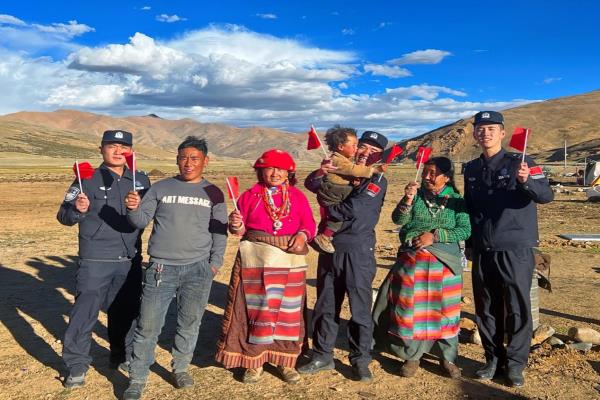 日土边境派出所与辖区群众共同开展我与国旗同框、共话祖国生日和合唱《我和我的祖国》等活动,日松边境派出所在辖区学校以“重温党史·喜迎国庆”为主题开展授课,从小树立学生们志存高远、忠于祖国,勇于做新时代有远大理想和抱负的爱国者和奋斗者。
