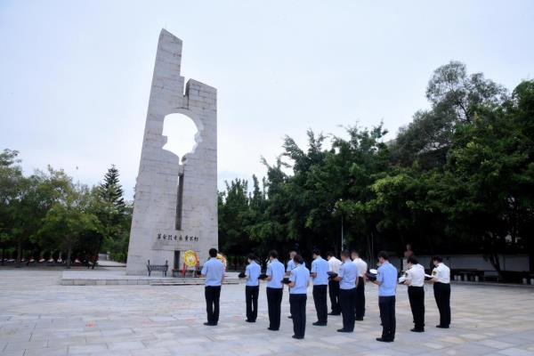 在烈士纪念碑前,全体人员整齐列队、庄严肃穆,怀着对先烈的无比崇敬和深切怀念,瞻仰烈士纪念碑、敬献花圈,向革命烈士鞠躬默哀、表达敬意。随后,大家来到烈士碑群前,认真阅读碑文,深入了解烈士们生前的感人事迹,为烈士们抛头颅、洒热血的革命英雄气概所折服,感受到了今天幸福生活的来之不易。