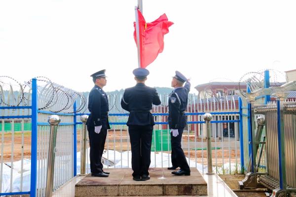 金秋送爽,硕果飘香。迎着第一缕朝阳,他们迈着整齐的步伐,在所有人期待中,护卫着国旗缓缓出现在眼前。“升国旗,奏国歌!”随着指挥员铿锵有力的指令发出,升旗仪式正式开始,伴着激昂嘹亮的《义勇军进行曲》,鲜艳的五星红旗冉冉升起,党员民警和戍边青年满怀忠诚、庄严敬礼!