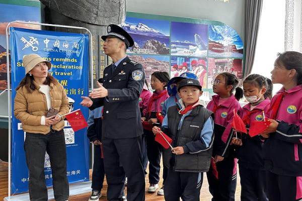 随后,少先队员们和移民管理警察一同前往该站站机关、中尼9号界桩,开展了爱国主义教育活动,让师生走进国门,一同行走边境线,感受体验别样的“警彩”。
