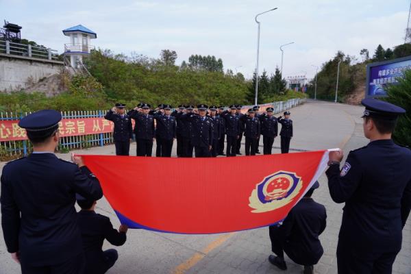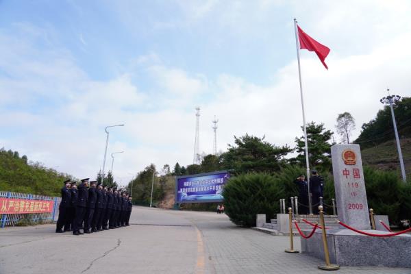 活动当天,护旗手迈着铿锵有力的步伐护送着国旗走向升旗台,当庄严的《义勇军进行曲》响起时,升旗手振臂一挥,鲜艳的五星红旗迎风招展,徐徐升起。全体民警心潮澎湃、满怀崇敬,庄重地向国旗敬礼,表达对祖国无限的热爱与热忱。升旗仪式后,在119号界碑旁,全体民警整齐列队、精神抖擞,面向警旗举起右拳庄严宣誓:“我是中国人民警察,我宣誓,坚决拥护中国共产党领导,矢志献身崇高的人民公安事业…… ”声声誓言响彻耳畔,满怀对党和人民的赤胆忠诚,宣示着献身移民管理事业的坚定决心。