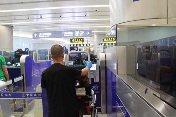 在旅客办理边防检查手续过程中,值班站领导时刻关注旅客的情况并进行言语安抚,旅客焦急情绪得到缓解,快速通关。