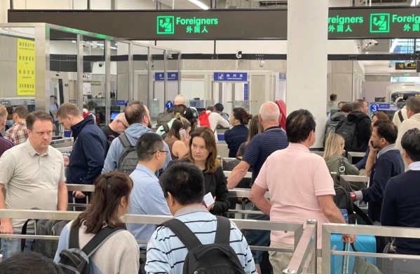 据了解,当天大批经皇岗口岸入境的旅客主要是来中国参加商务活动、贸易洽谈、返乡探亲等,受台风“小犬”影响,深港两地持续降雨不断,香港天文台悬挂“九号风球”,多项公共交通运输服务暂停,深圳湾口岸、港珠澳大桥口岸相继暂停服务(深圳湾口岸9日上午11时09分已恢复通关服务),许多外国籍旅客选择经皇岗口岸通关,行程增加了几小时到10多小时不等,抵达口岸后都不同程度的显出疲倦之意。