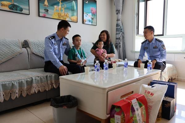 当天上午,该站慰问组驱车七十余公里赶往沧州市盐山县,探望在这里居住的两户戍边民警家庭。第一户戍边民警家庭在千童镇,慰问组赶到时,戍边民警的父亲已经在街道旁等候。“你们大老远过来,真是不容易啊,快来家里坐坐。”慰问组刚下车,民警父亲就热情地迎了上来,将慰问组领到家里。在家里,慰问组和民警家属坐在一起,亲切地交流起来。“孩子不久前还打来电话,说他在边疆挺好的,让我们放心。还说能为祖国守边关,他感到非常自豪。”民警父亲说。该站党委成员、政治处主任滕建锋同志向民警家属表达了对戍边民警的敬意,并转达了国家移民管理局党组和河北出入境边防检查总站党委的关怀和祝福,民警家属对组织的慰问表示感谢,还向慰问组讲述了戍边民警的成长经历。