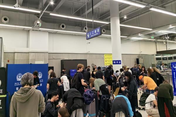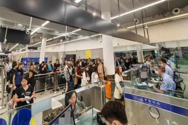 原来,因通关流程不熟、语言不通、又赶上入境高峰,50余名芭蕾舞团成员在皇岗口岸入境大厅犯了难。在详细了解该团人数、所持出入境证件签证、签证以及中方接待情况后,皇岗边检站执勤三队快速反应,结合现场通关客流,开足全部查验通道,并调整设置专用通道,提升查验效率。同时,增派警力在外国人入境卡填写处为代表团成员提供咨询帮助服务,及时进行客流疏导及秩序维护。执勤民警全力配合,高效为50余名芭蕾舞团成员办理入境手续,确保了口岸通关秩序安全有序稳定。