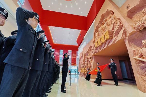第十三师的前身是第六军十六师,他们曾在解放战争中,保卫延安三战三捷、攻克兰州为中国的解放事业,做出了不可磨灭的贡献。在博物馆里,全体党员民警面对党旗举手宣誓,重温入党誓词,牢记初心使命。随后,全体人员边走边看,聆听革命前辈们的事迹和精神观看红军师各个时期的文字介绍、历史照片、革命文物和军史影片。博物馆展览以时间为轴,集中展示了这支部队诞生发展和挺进新疆、保卫新疆、参与建设新疆的不朽功勋。参观中,全体党员民警驻足凝视,认真聆听讲解,无不为革命先辈一心为国、投身革命的高尚境界深深感动。