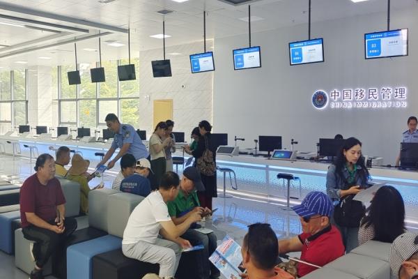 为进一步做好中越德天(板约)瀑布跨境旅游合作区出入境法治服务保障,10月22日,硕龙出入境边防检查站利用周末跨境游客较多时段,在中越德天(板约)瀑布跨境旅游合作区出入境办证大厅为等待办证的游客开展边境法律法规宣传。