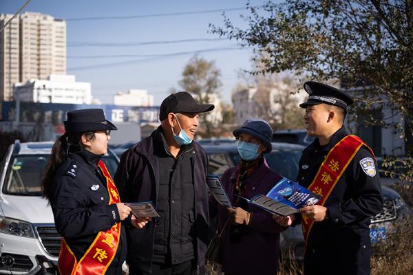 11月7日,新疆哈密老爷庙出入境边防检查站开展“积蓄到老不容易,一起守好钱袋子” 防范诈骗法律知识科普活动。