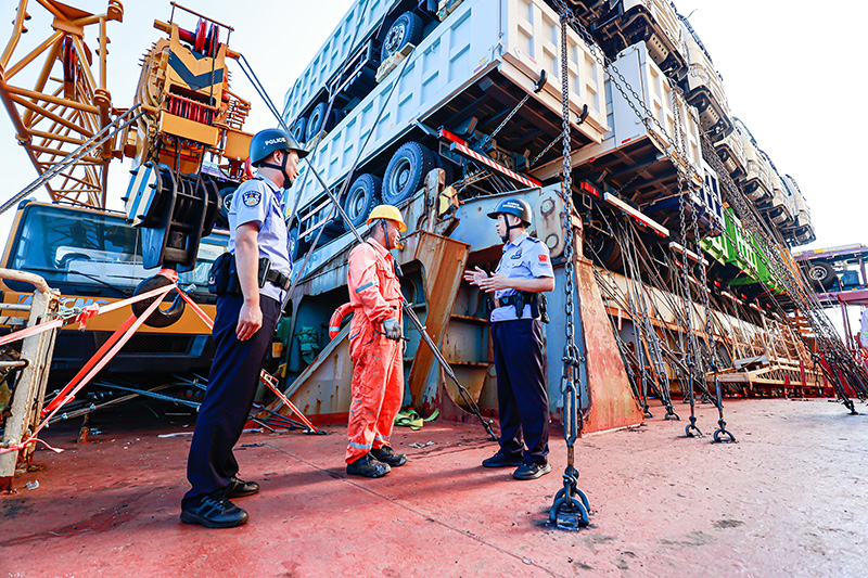 该站提前对接港口企业,联系船方公司,根据服务中非合作航线出入境船舶举措“量身定制”“一船一策”,选派业务素质过硬、经验丰富的民警组成勤务小组,把查验窗口前置到码头一线,有效缩短船舶业务流程时间。