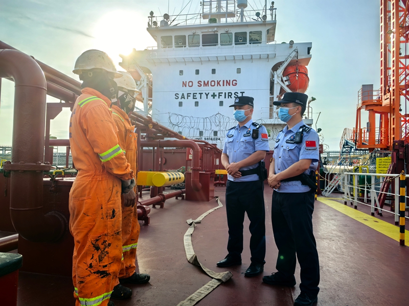 运输沥青的小型船舶抗风浪能力较弱、船期灵活,多承担短途运输任务,其船员、航线相对固定。针对这一特点,洋浦边检站优化查验流程,采用“无感通关”服务模式,开启线上信息核查与风险评估,船舶作业完毕、手续办结,即可离港,避免出现空窗期。