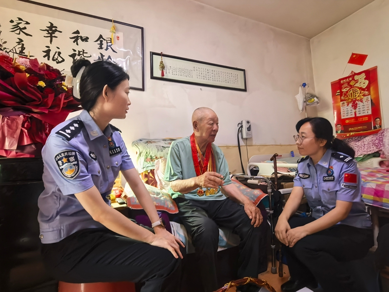 今年是中国人民抗日战争暨世界反法西斯战争胜利80周年,伟大抗战精神历久弥新,激励着中华儿女奋勇前行。7月31日,山西出入境边防检查总站民警走进迎泽区南内环街四社区,看望慰问98岁的抗战老兵史文勋。