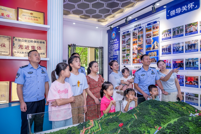“平时总说爸爸在口岸工作很忙,今天来了才知道他守护的是这么重要的地方,爸爸辛苦了。”民警子女多多说,并表示以后会更懂事地支持爸爸工作。平孟站负责人表示,此次警史馆开放活动,不仅让民警子女近距离了解父辈的职责使命,更在他们心中播下了爱国奉献的种子。未来,站里将持续开展此类活动,让红色基因在警营后代中代代相传,让“国门精神”成为激励一家人共同前行的力量。