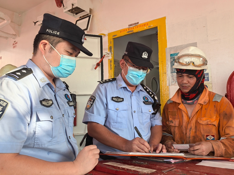 我们开通‘绿色通道’,实施‘无感通关’服务模式,实现最小干预、快捷通关、精准监管,提高口岸通关效率,降低企业运营成本。”洋浦边检站执勤三队队长陈锦荷介绍道。