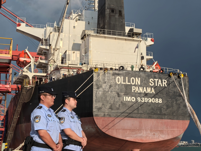 8月9日20时,巴拿马籍船舶“澳龙之星”轮缓缓靠泊国投洋浦港5号泊位,该轮装载的5.2万余吨油菜籽将在洋浦口岸完成接卸,洋浦边检站开通“绿色通道”,保障船舶顺畅通关。